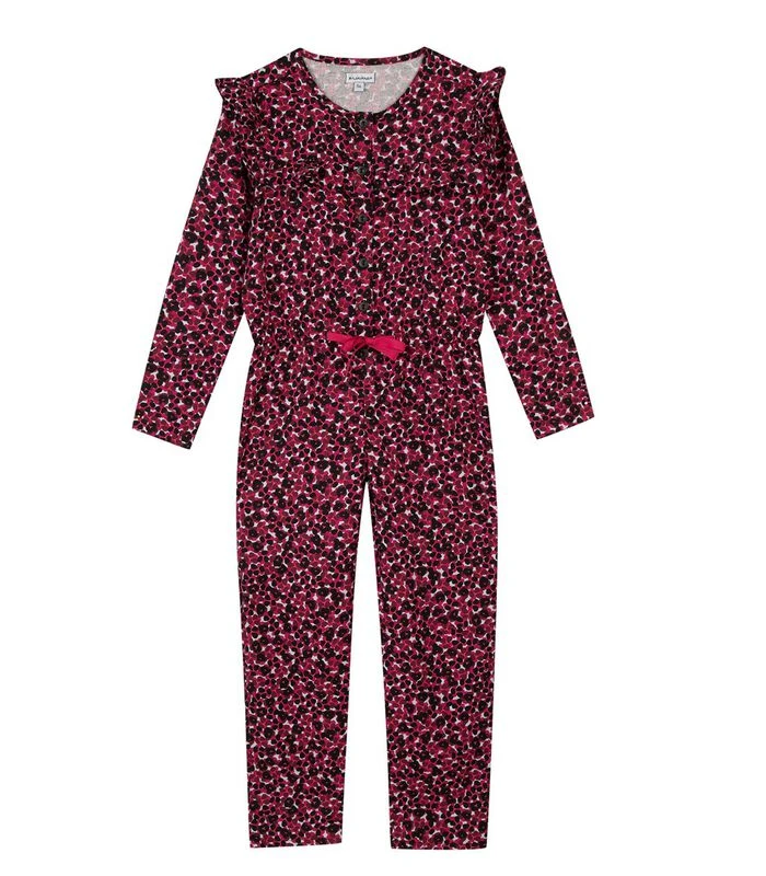 Product details: Ultra–trendy, bedrukte lange jumpsuit met ruches, opening met knoopsluiting en elastiek in de taille. Eco–ontworpen product: gebruik van stoffen uit Europa, productie in beperkte series en nabijheid tot minder dan 1500 km van Frankrijk. Samenstelling en verzorging: 51%COTTON 49%VISCOSE Wassen 30°C normaal programma