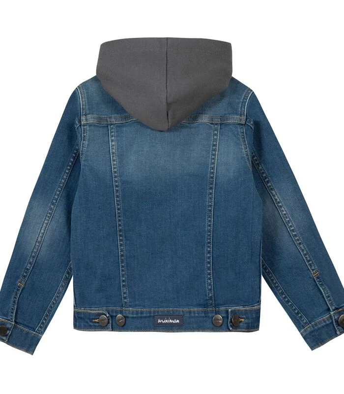 Product details: Ultra–trendy en onmisbaar voor het seizoen, denim jack met afneembare fleece capuchon en geborduurde badges op de voorkant. Eco–ontworpen product: gebruik van stoffen uit Europa, productie in beperkte series en nabijheid tot minder dan 1500 km van Frankrijk. Samenstelling en verzorging: 98%COTTON 2%ELASTHANNE Wassen 30°C normaal programma