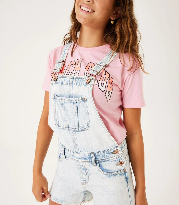 Denim jumpsuit met borstzak. Deze jumpsuit heeft een knoopsluiting, steekzakken, een afgeknipte onderkant en een slim fit. Dit item is gemaakt van 100% katoen.