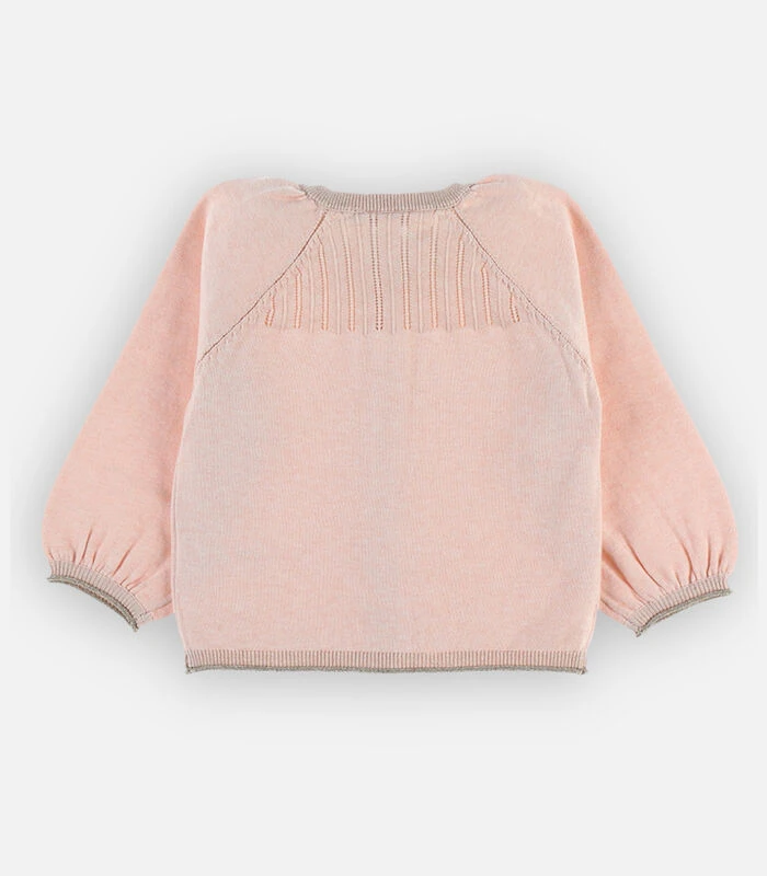 Deze roze gebreide kasjmier cardigan met een ronde hals en lange mouwen heeft een “baggy style” wat de cardigan modieus maakt. Een tijdloze kledingstuk die zich in ieders kleerkast moeten bevinden! Deze cardigan zal je kind lekker warm houden tijdens de wintermaanden.