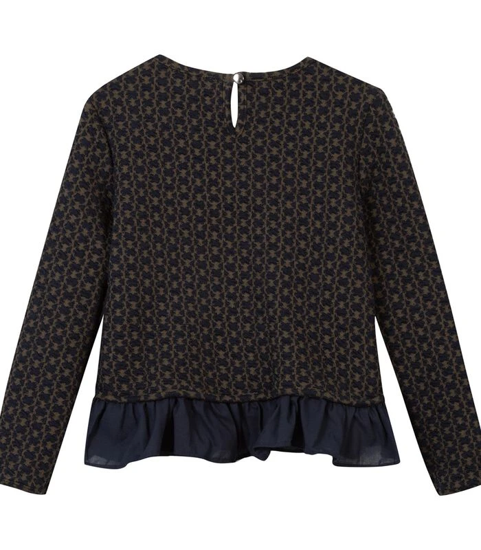 Détails du produit :  Pull en maille noble avec volants et motif lurex brodé.  Produit éco–conçu : utilisation de tissus d’Europe, production en série limitée et proximité à moins de 1500 km de la France.  Composition :  38% COTON 48% POLYESTER 12% VISCOSE 2% ÉLASTHANNE  Instructions de lavage : Laver à 30°C en programme normal.