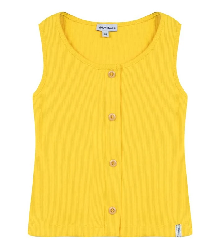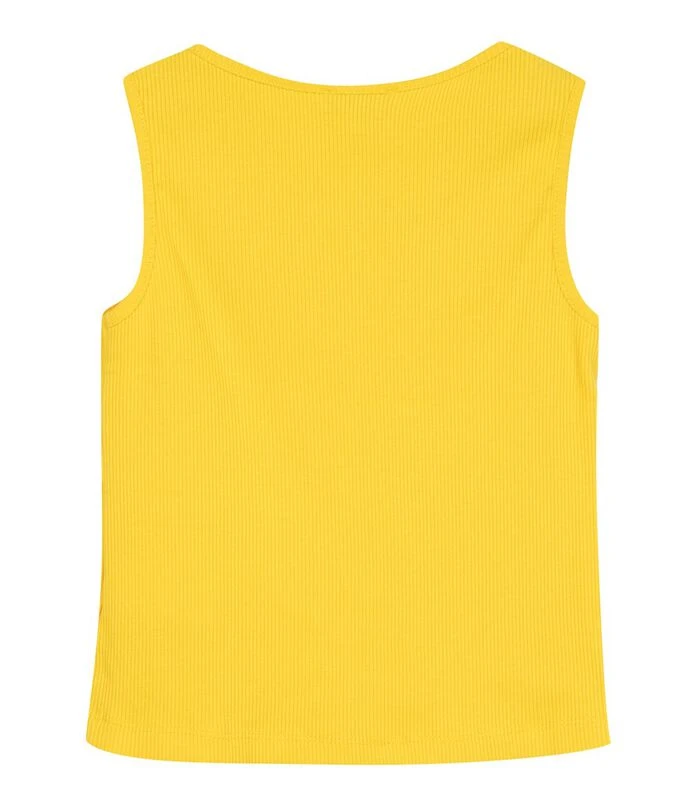 Geribde tanktop met valse opening vooraan en imitatie houten knopen, ideaal voor het seizoen Â