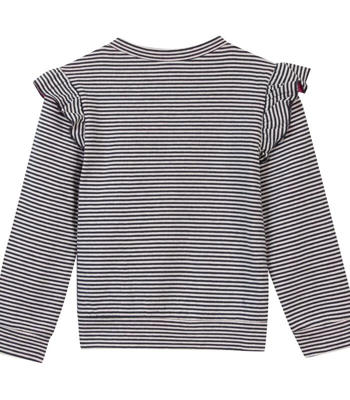 Product details: Gemakkelijk te combineren, dubbelzijdig gestreept sweatshirt met ruchekraag en geborduurd hartjesdetail. Eco–ontworpen product: gebruik van stoffen uit Europa, productie in beperkte series en nabijheid tot minder dan 1500 km van Frankrijk. Samenstelling: 100% katoen Onderhoud: Wassen op 30°C normaal programma
