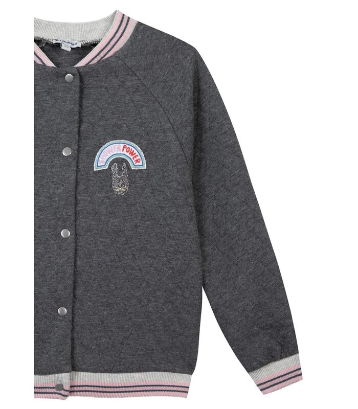 Product Details: Ultra–trendy en gemakkelijk te combineren teddy sweatshirt met knoopsluiting in gewatteerd breisel met gestreepte ribboord en geborduurde badges. Oeko–Tex® gecertificeerd product: dit artikel heeft het internationale Oeko–Tex® Standard 100 label gekregen, dat de afwezigheid van stoffen garandeert die ongewenst zijn voor de gezondheid. Samenstelling en verzorging: 100% KATOEN Wassen op 30°C normaal programma