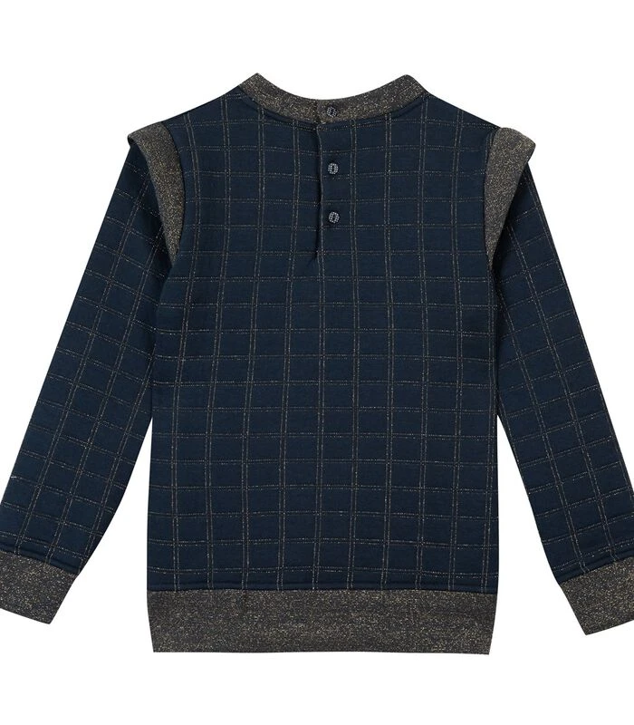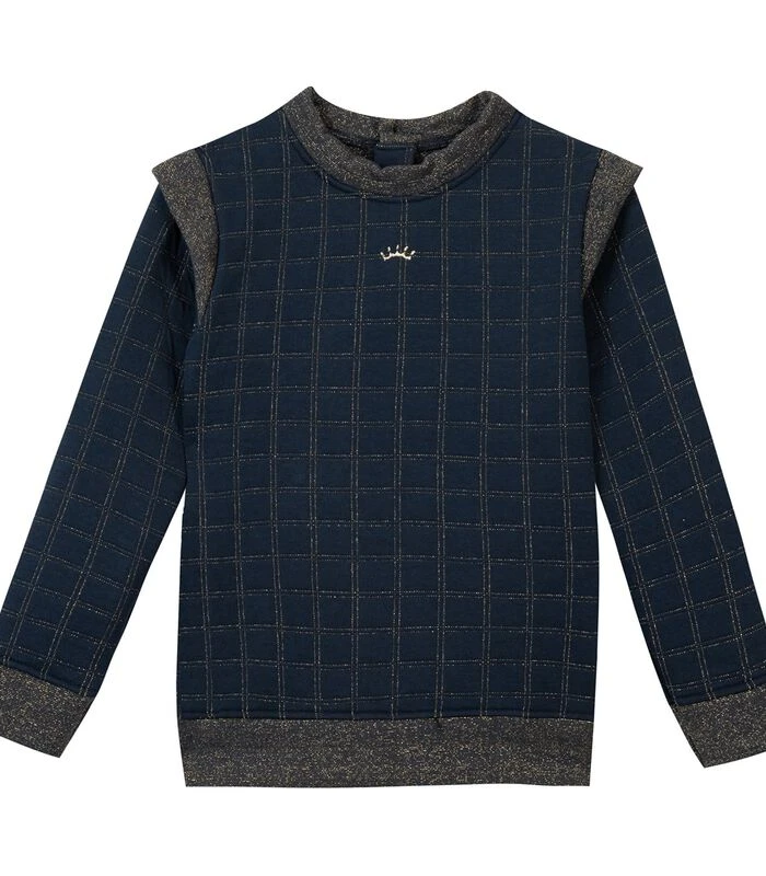 Product details: Nieuwe trendy vorm voor deze doorgestikte gebreide trui met gouddraad. Opening aan de achterkant voor gemakkelijk aankleden. Milieuvriendelijk product: gebruik van stoffen uit Europa, productie in beperkte series en nabijheid van minder dan 1500 km van Frankrijk. Samenstelling en verzorging: 62% KATOEN 33% POLYESTER 5% POLYAMIDE Wassen op 30°C normaal programma