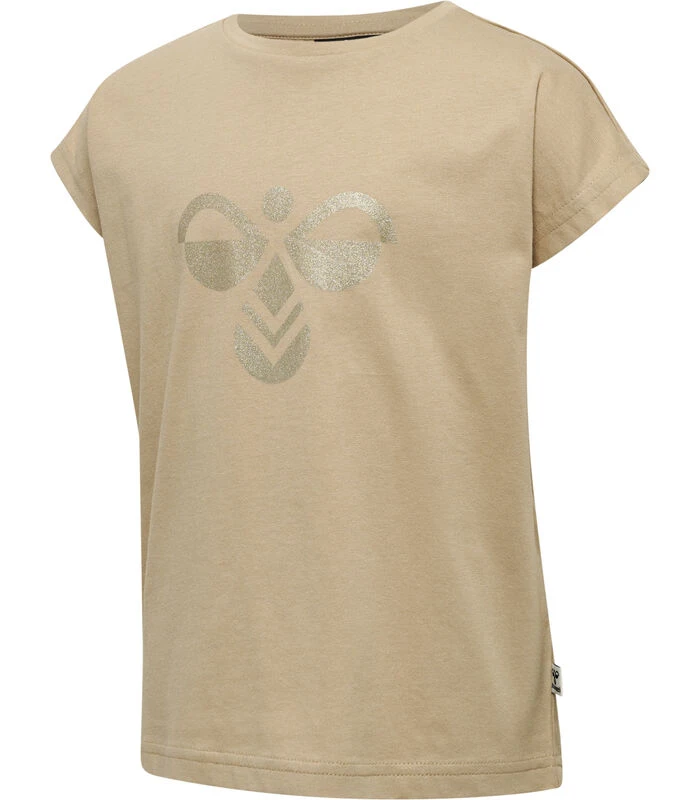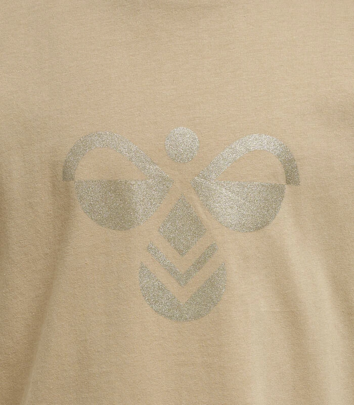 Jersey stof. Aquarel logo met pailletten. 100% katoen