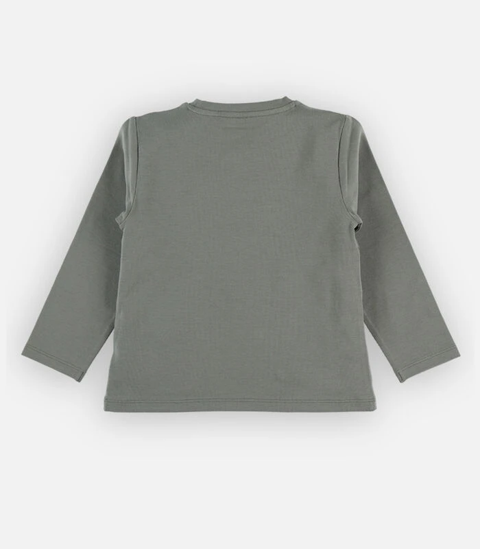 Kaki katoenen T–shirt met ronde hals en lange mouwen, bedrukt met een schattige giraf ! Dit T–shirt matcht uitstekend met een rokje of een eenvoudige jeans voor een modieuze look. Een tijdloze kledingstuk in de kleerkast van je kind !