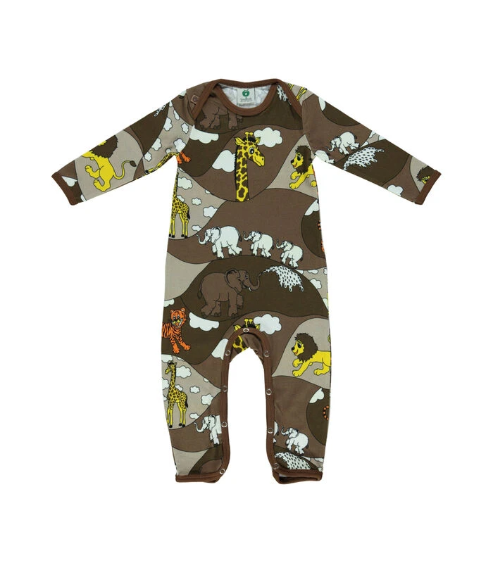Pyjama met dierentuin en zonder voeten van Småfolk. De pyjama biedt maximale bewegingsvrijheid en is daarom perfect om ’s nachts lekker in te liggen en ideaal om overdag lekker in te kruipen. De vele drukknopen maken het verschonen van luiers gemakkelijk.