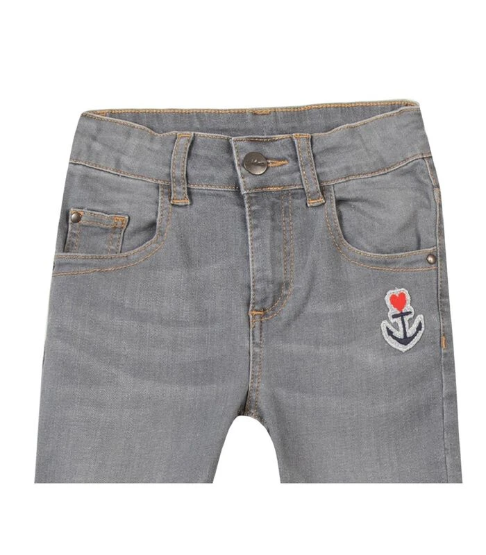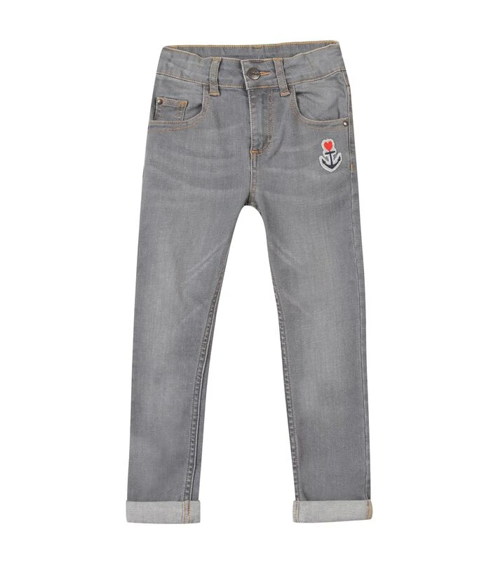 Product details:  Ultra–trendy slim–fit jeans met geborduurd ankermotief op de voorkant. Wij houden ervan vanwege het rekbare katoen dat zorgt voor optimaal comfort.  Verstelbare taille met geknoopt elastiek.  Milieuvriendelijk product: gebruik van stoffen uit Europa, productie in beperkte series en nabijheid van minder dan 1500 km van Frankrijk.  Samenstelling en verzorging:  98%COTTON 2%ELASTHANNE Wasvoorschriften: 30°C normaal programma